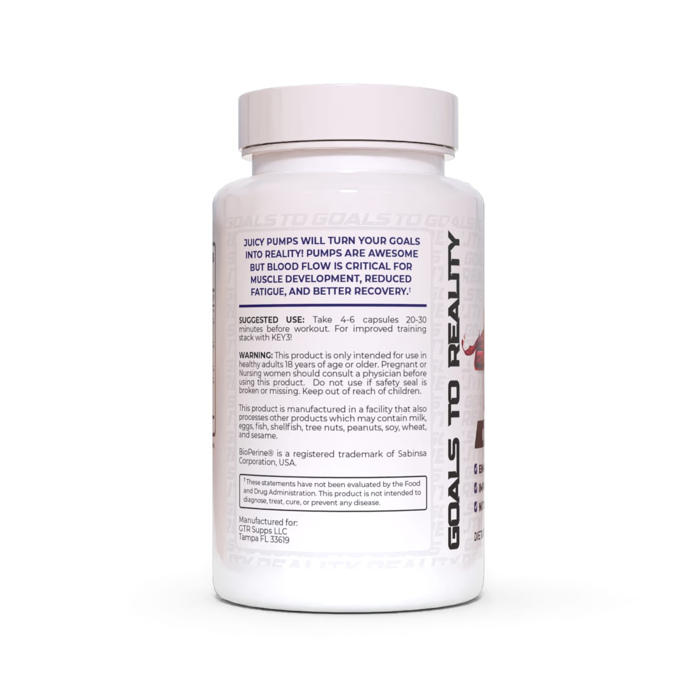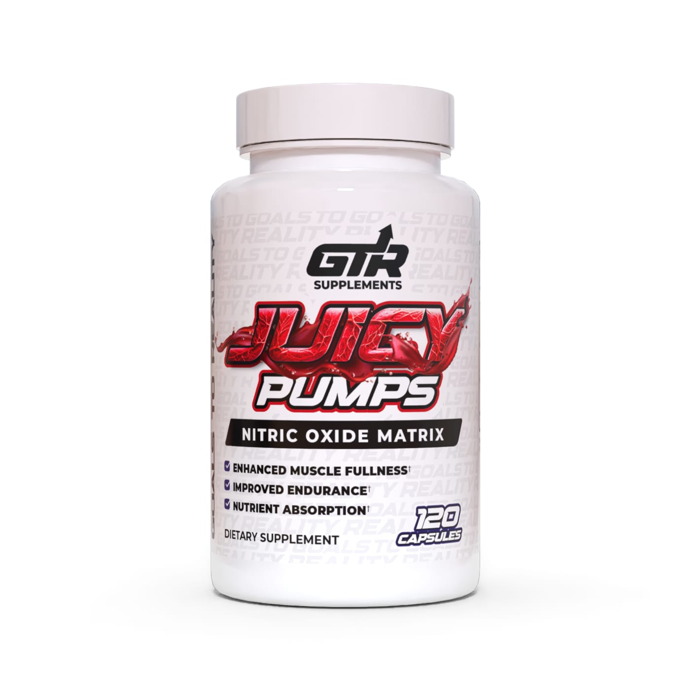 GTR Juicy Pumps is a powerful nitric oxide matrix designed to drive blood flow, fuel muscle fullness, and elevate your training intensity when it matters most. More flow. More focus. More results.